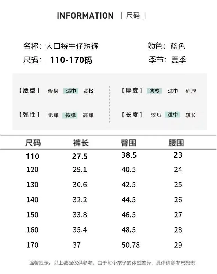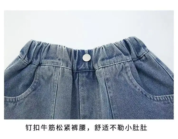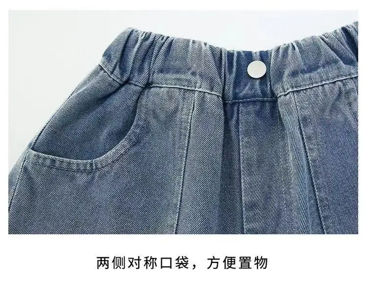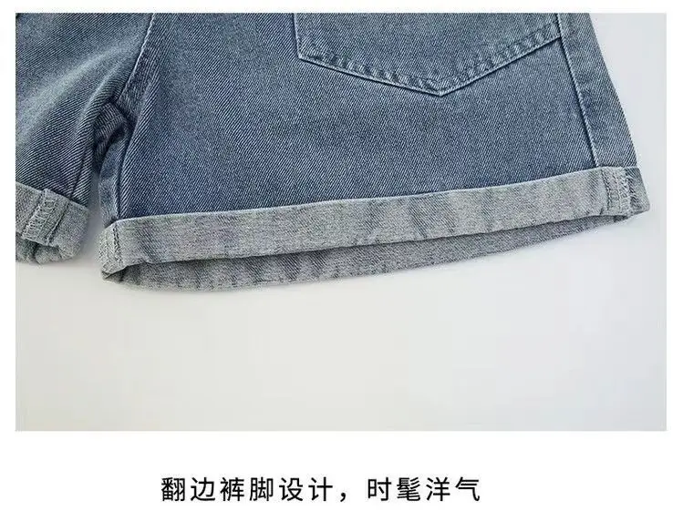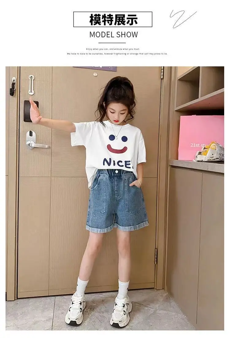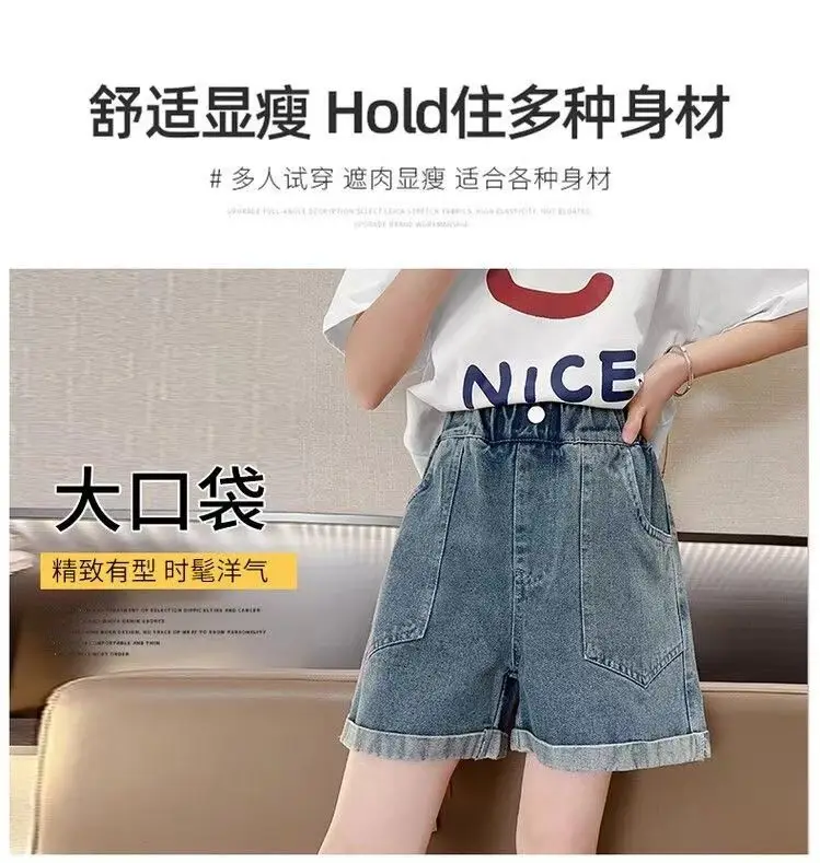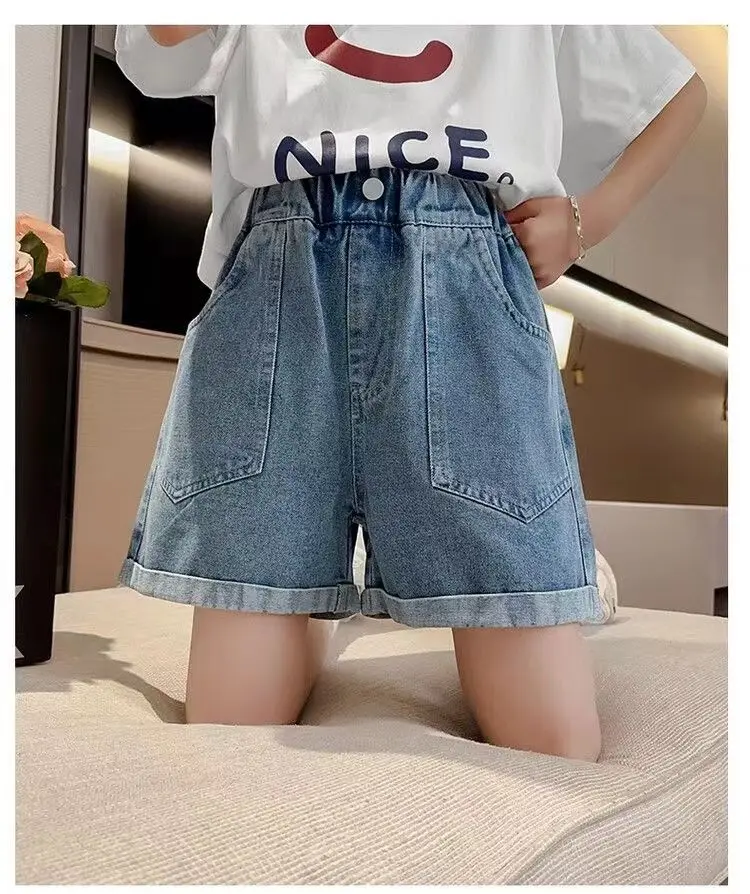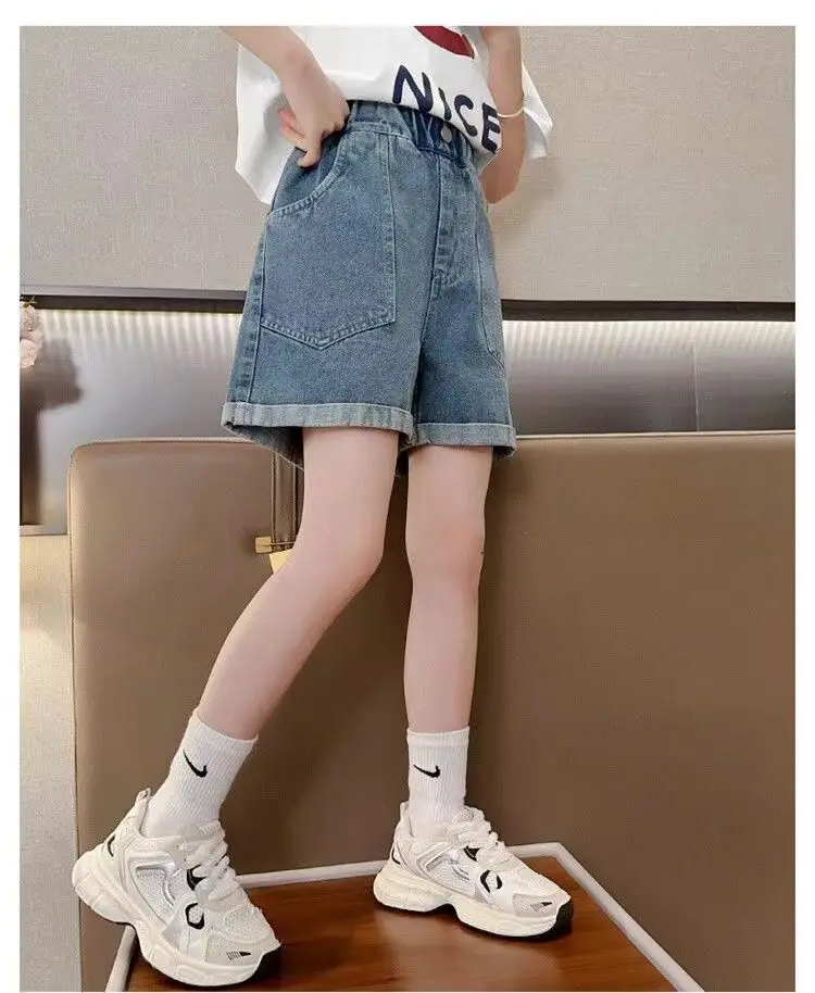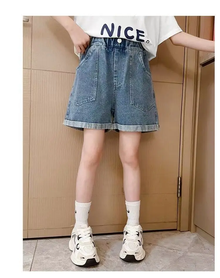 2025 Summer Teen Girls Denim Shorts Clothes New Arrival Kids Child Elastic Waist Fashion Pocket Design Shorts Age 5-14 Years Old