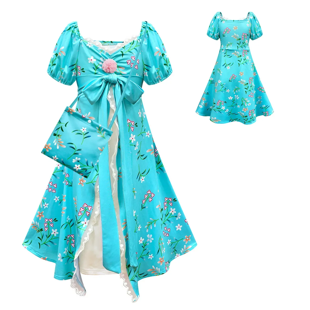 Anime Cosplay Kids Clothes Girls Movie Enchanted 2 Giselle Cosplay Princess Dresses Children Bubble Sleeve Bow Elegant Vest 72th