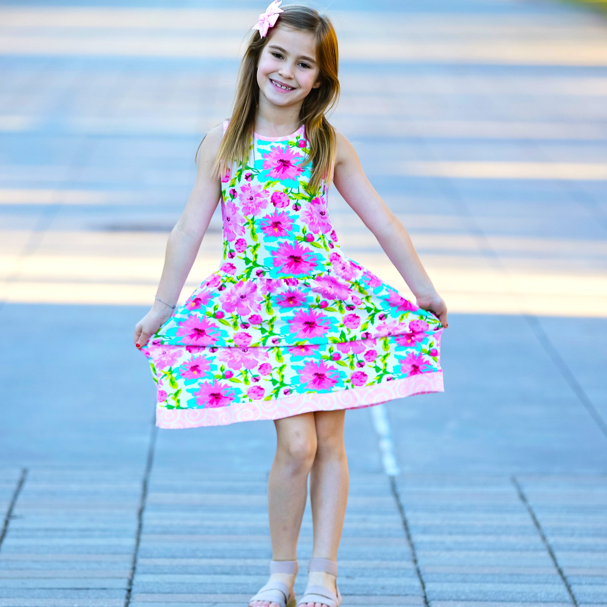 AnnLoren Original Green & Pink Floral Dress. The 95% high quality Egyptian cotton and 5% stretchy lycra fabric is SUPER soft and comfortable. Premium dye's ensure that your outfit won't fade or run. Machine Washable.