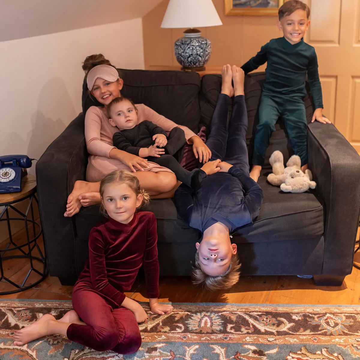 AP 2025 AW Velour lounge wear butter soft pj family matching set dress and romper clothes kids baby teen boys girls clothing