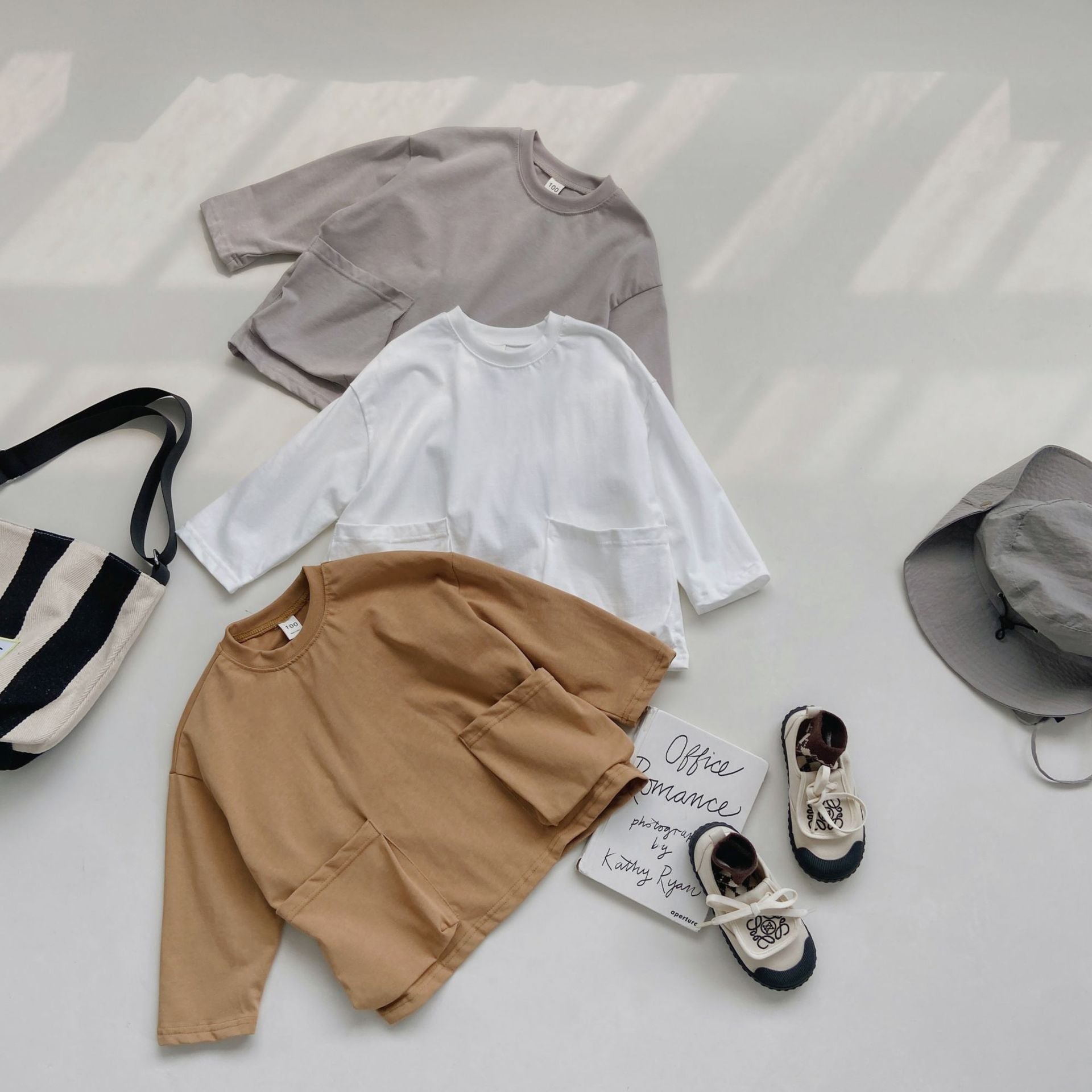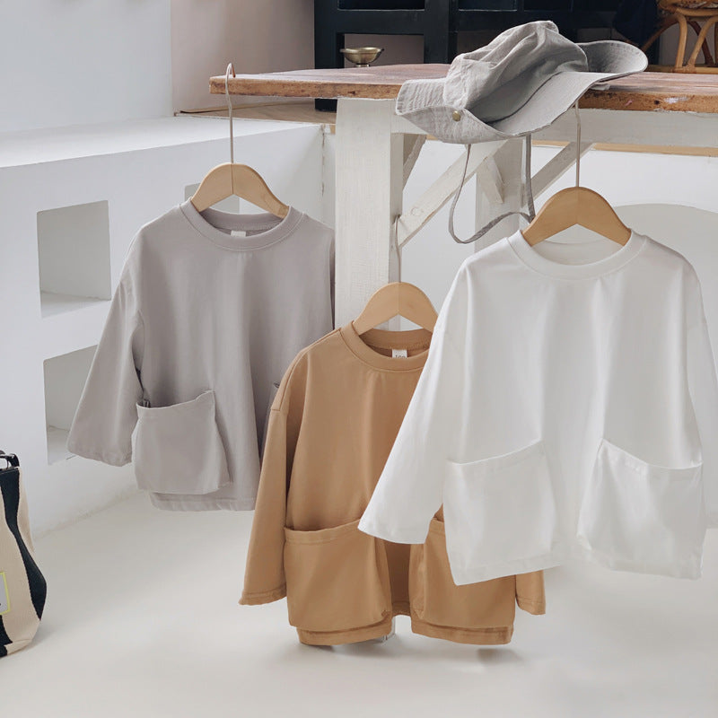 Autumn Arrival Baby Kids Unisex Comfortable Solid Color Pocketed Long Sleeves Top