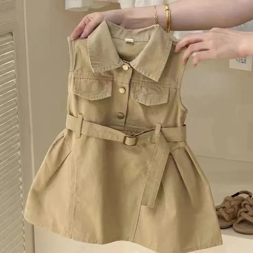 Bear Leader Fashion Girls Windbreak Dresses Summer Sleeveless Work