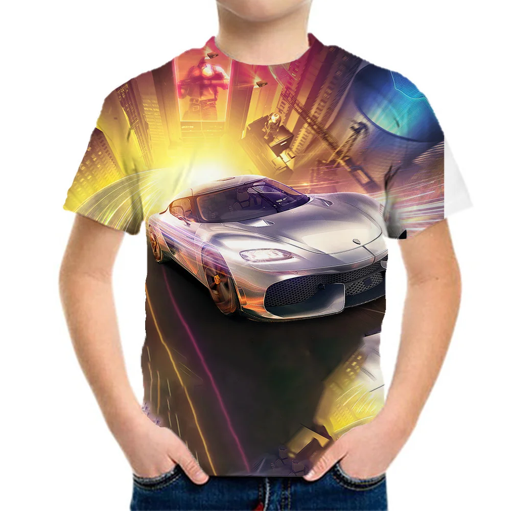 Kids Clothes Boys Purple Cool Racing Car Tee Shirts Graphics Tshirt Summer Children 's T-Shirt Clothing Teens Tops Korean Black
