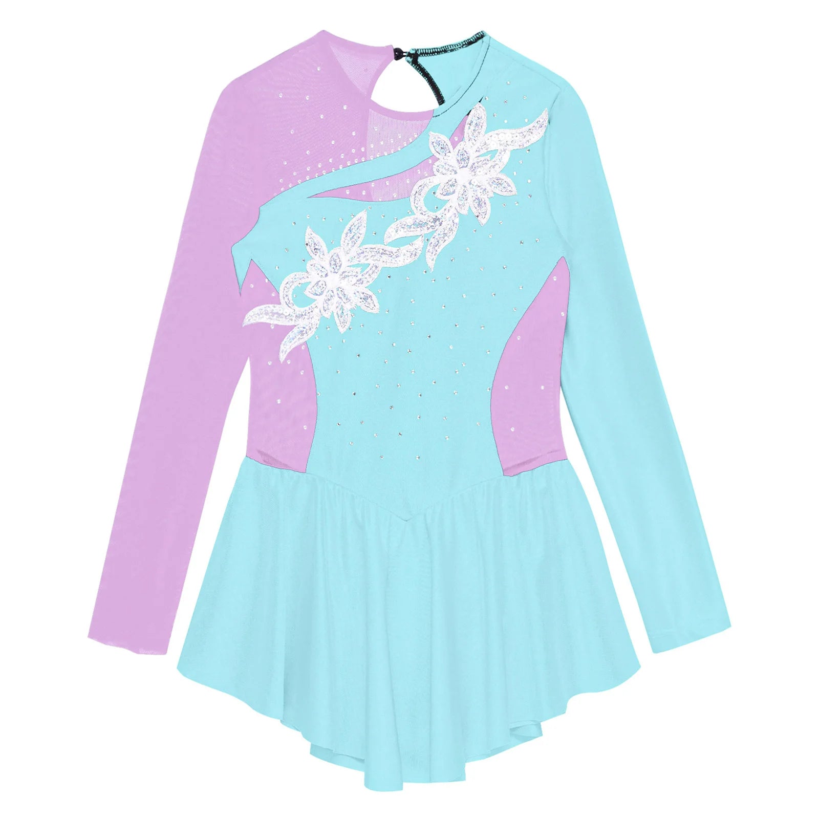 Kids Girls Ballet Tutu Dress Gymnastics Leotard Dance Wear Long Sleeve Rhinestone Figure Skating Costume Ballerina Party Dresses