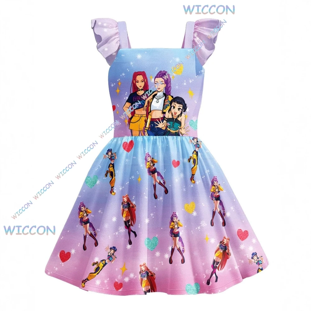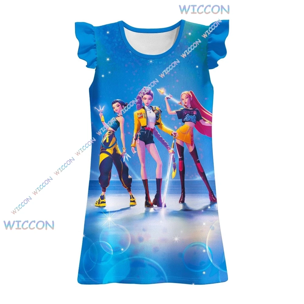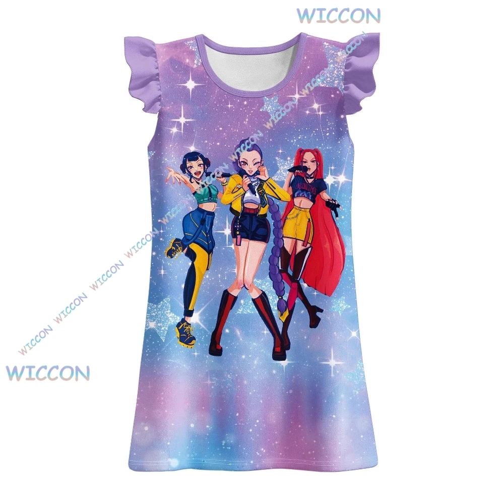 [MAGCOS]KPop Demon Hunters Clothes Kids New Summer Short Sleeve Dress Toddler Girls Casual Dresses Children Cartoon Nightgowns S