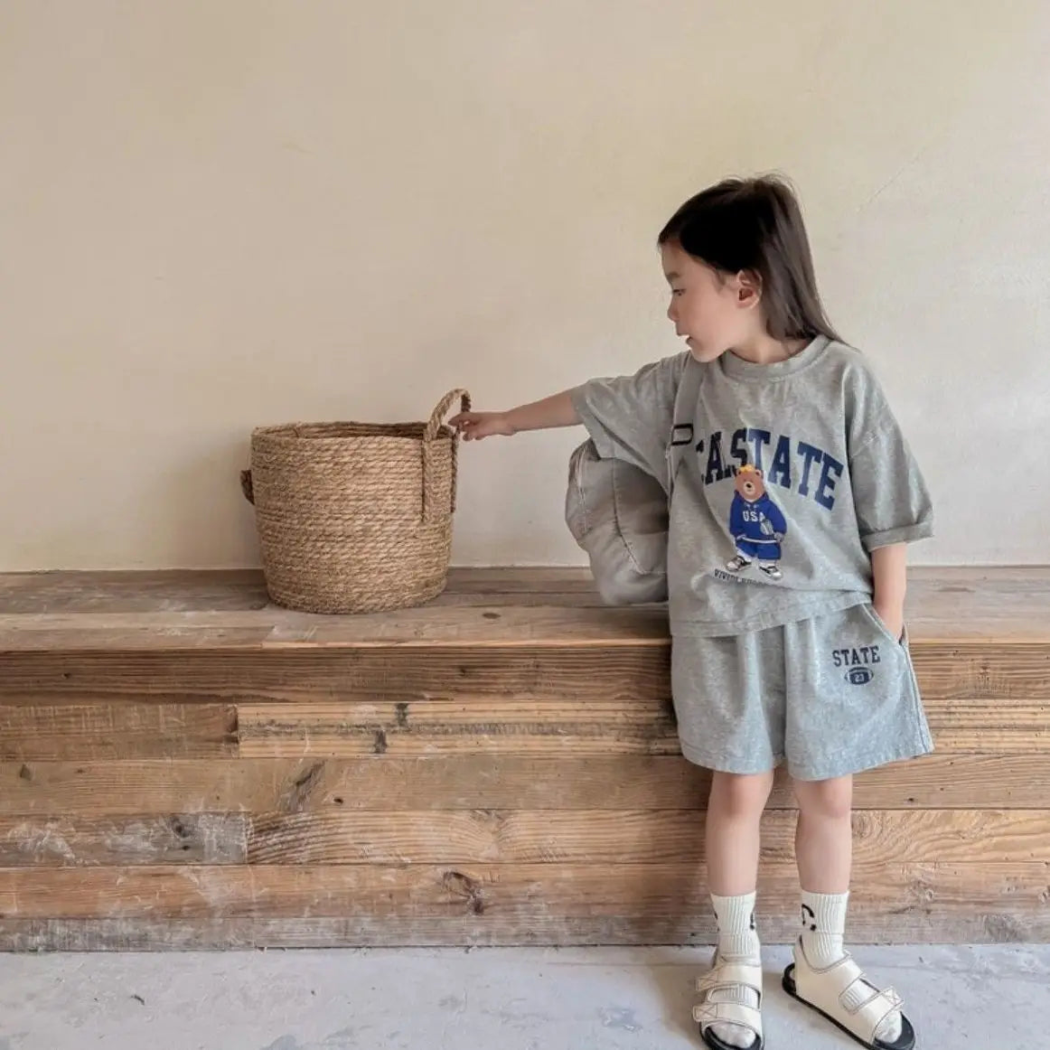 Summer Toddler Baby Girl Solid Cotton Clothes Short Sleeve Cartoon Bear Printed T-shirts and Shorts 2pcs Set Kid Boy Tracksuits