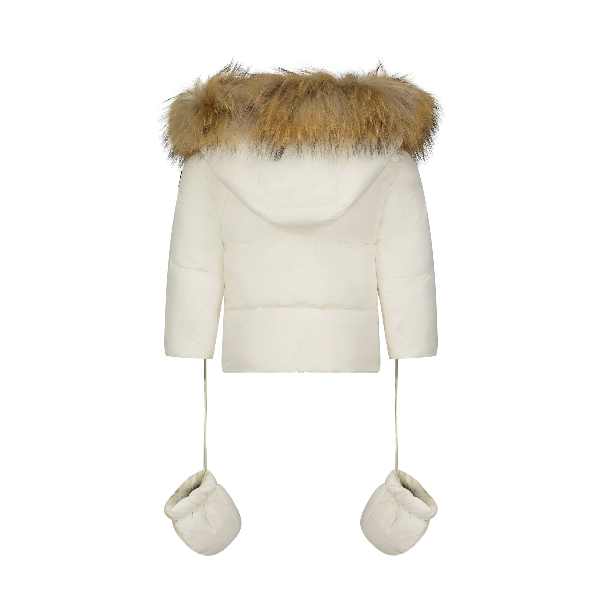 Boasts a luxurious high collar and a hood featuring real raccoon fur.